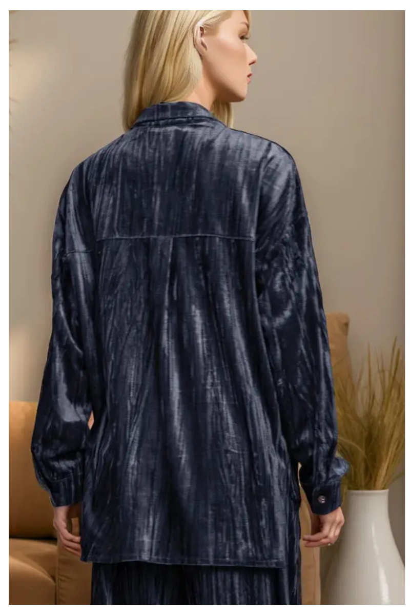 A LUX VELVET IN A DEEP BLUE-GRAY TO PAIR WITH DENIM OR LEATHER LEGGINGS.