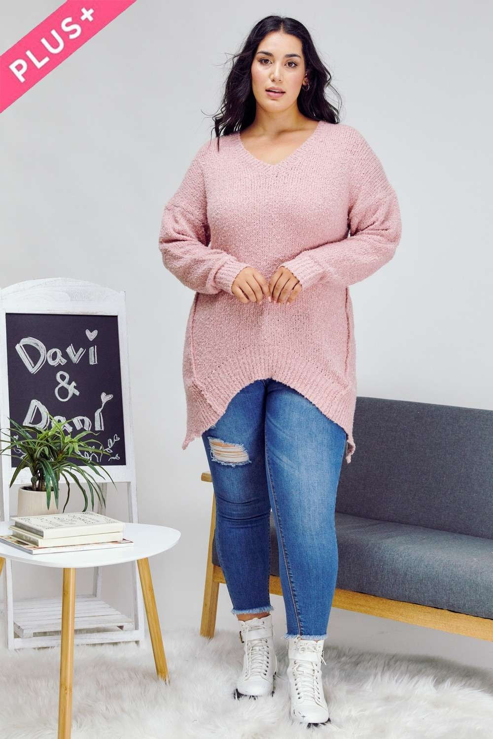 FALL IN LOVE WITH THIS SUPER SOFT PINK SWEATER. TEXTURE A FLATTERING V-NECK.