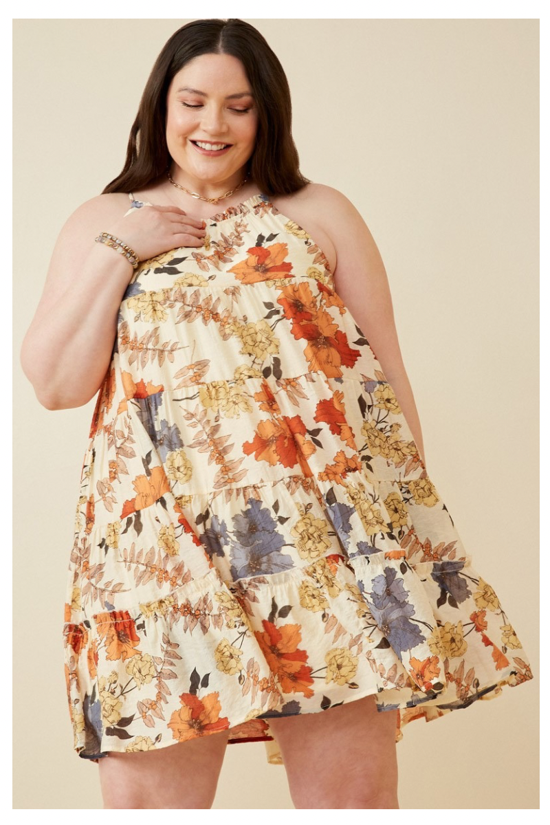 THIS SWEET DRESS IS SO FUN AND YOU’LL LOVE HOW SHE FLOWS OVER YOUR CURVES! PAIR WITH A DENIM JACKET FOR COOLER NIGHTS.
